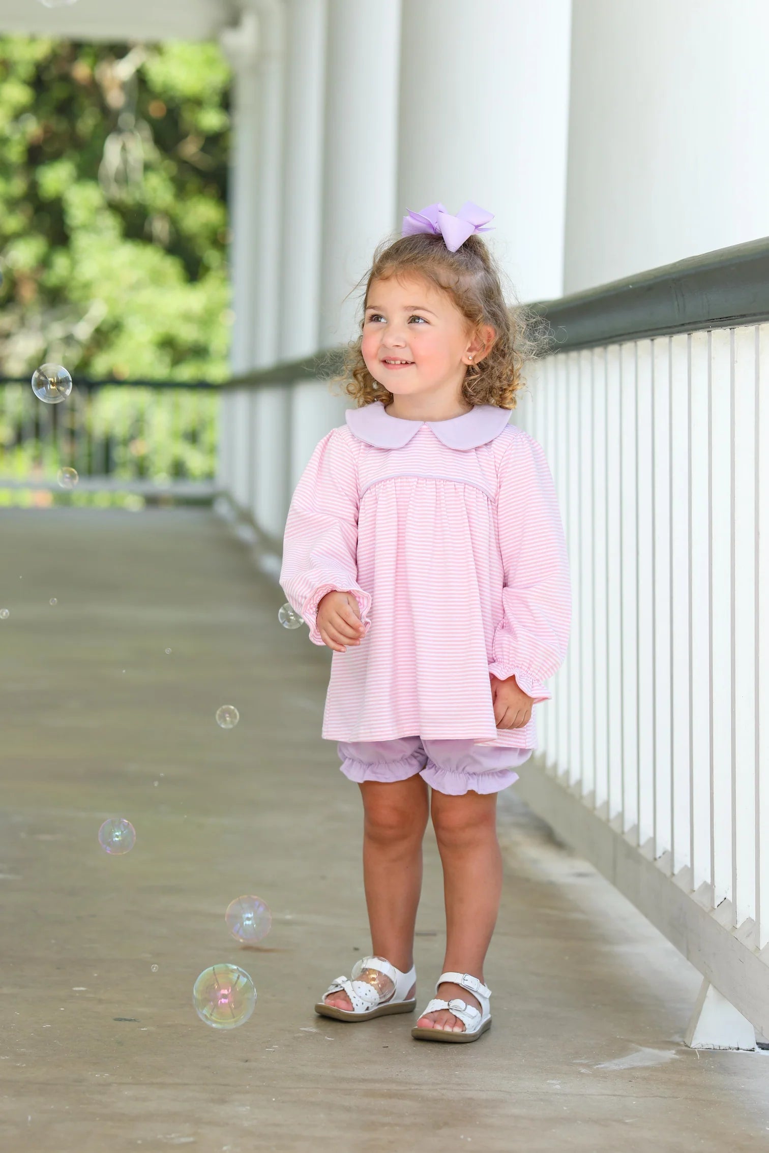 Katherine Bloomer Set- Light Pink Stripe/Lavender
